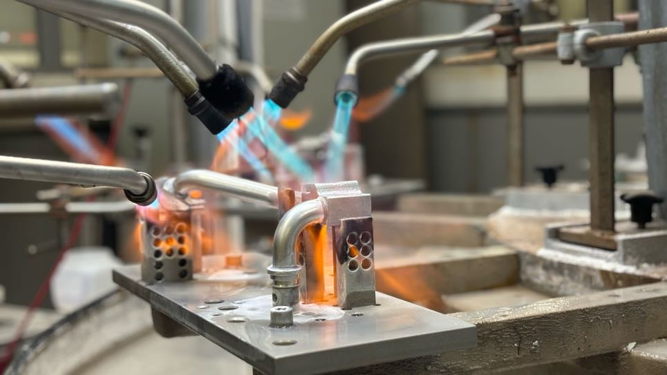 Currently at Manston there are a variety of different brazing machines, this includes, six-station rotary brazing ovens, sliding brazing ovens and manual brazing stations. This machinery provides Cohline UK with the ability to braze large quantities of aluminium pipes and fittings in house.