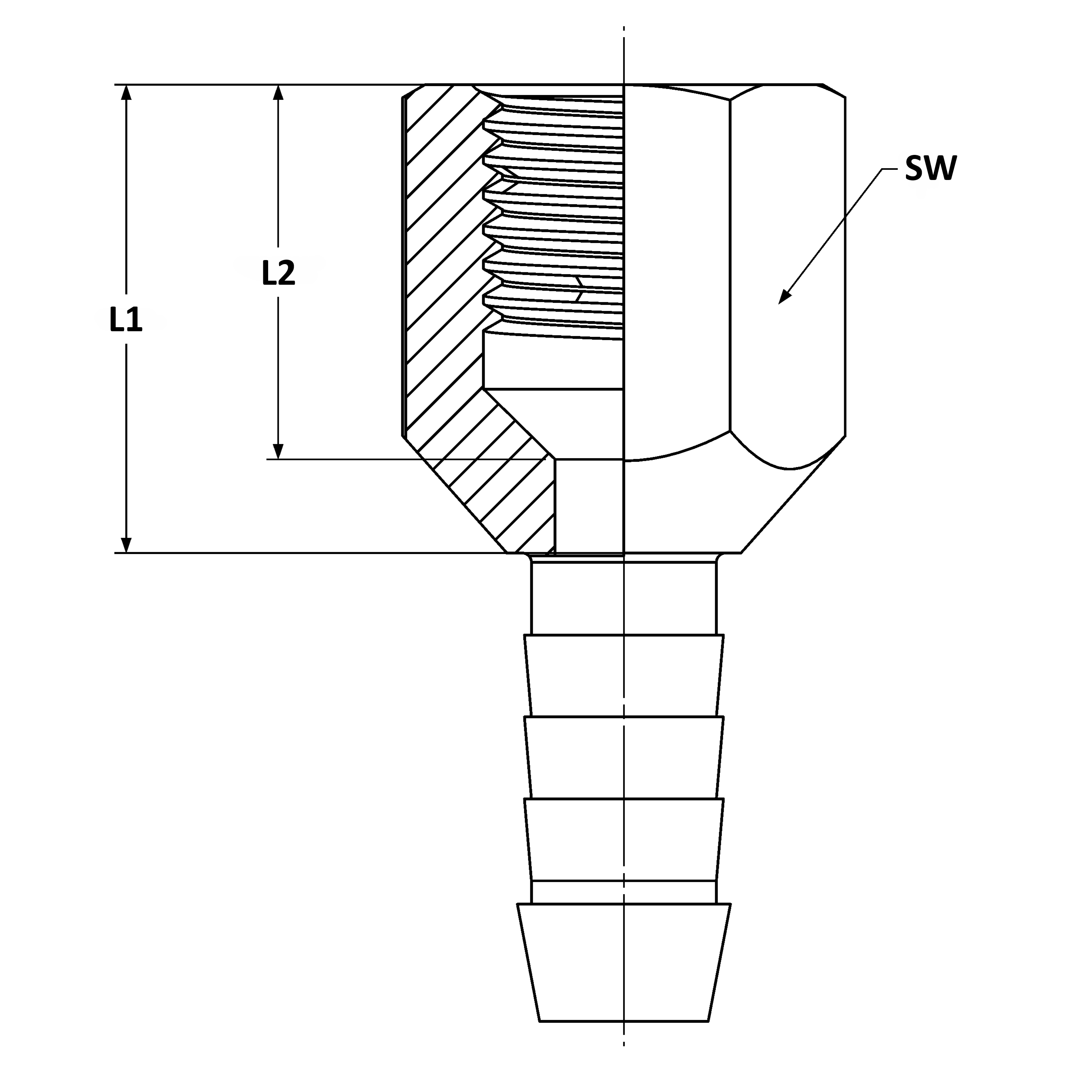 SKU | SW (mm) | Ø for hose inside | DN (NW) | thread | L1 | L2 |
