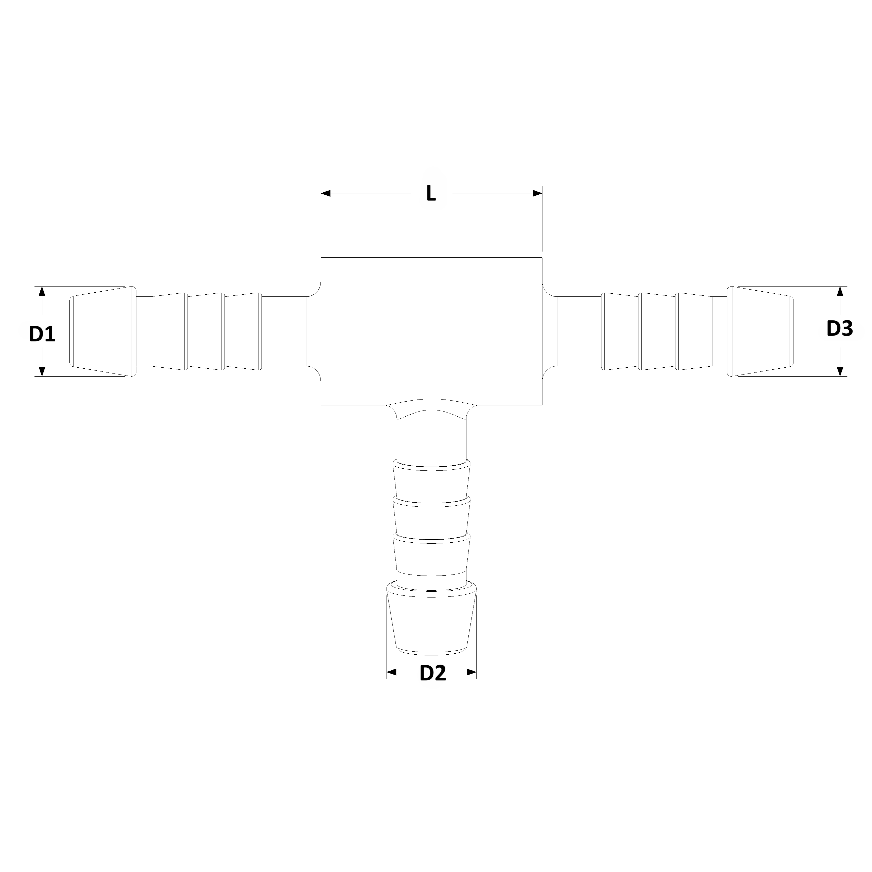SKU DN (NW) D1 Ø of hose inside (mm) D2 Ø of hose inside (mm) D3 Ø of hose inside (mm) L (mm)