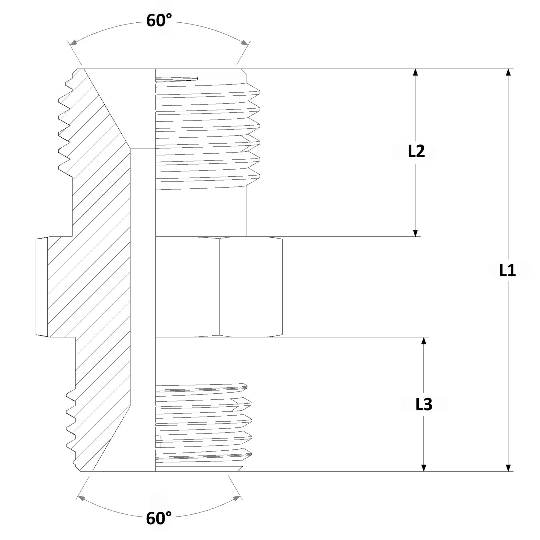 Threaded Hose Adaptor with an internal 60° cone on both sides